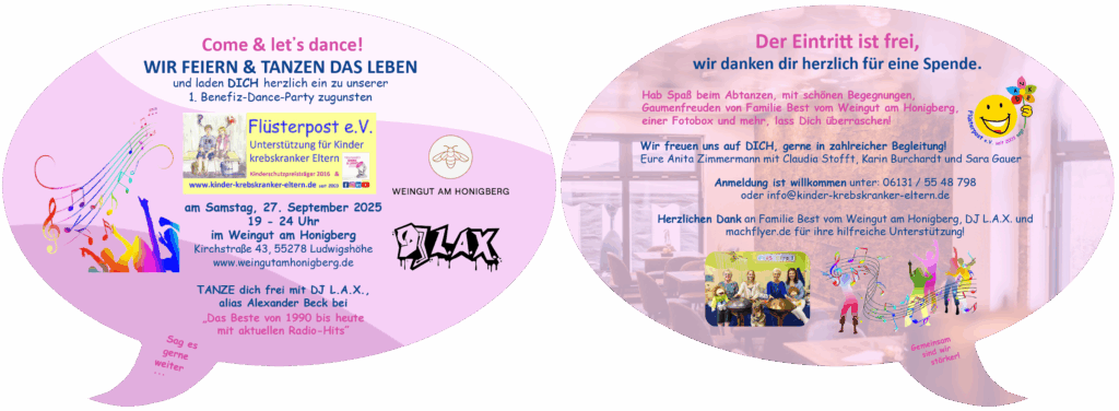 Vielen Dank für Eure Unterstützung mit ganz herzlichen Grüßen von Eurem Flüsterpost-Team.